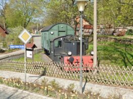 Denkmal Torfverladestation-Brücke mit Feldbahn-Zug – Ostrhauderfehn 268421.Südwieke 374/d, 26842 Ostrhauderfehn, Deutschland