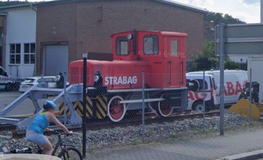 Bei der Firma Strabag Rail in Freital, steht straßenseitig eine Diesellok Deutz KHD KS 55 B als Denkmal aufgestellt.