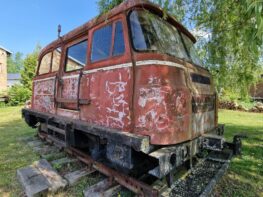 Stand 2024: eine Diesellok vom Typ V10B und ein gedeckter Güterwagen sind noch vorhanden.